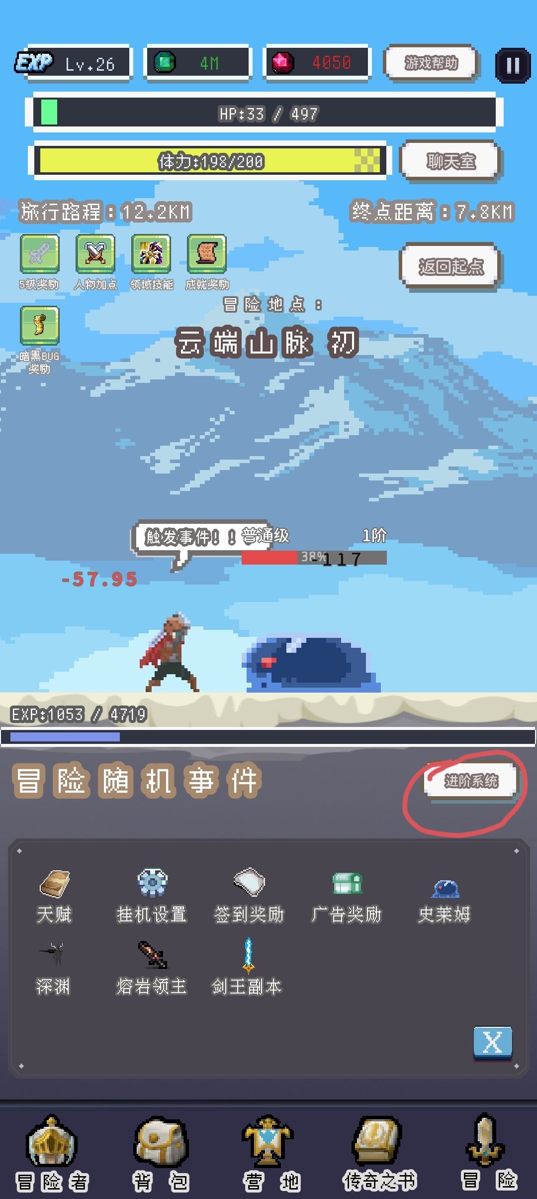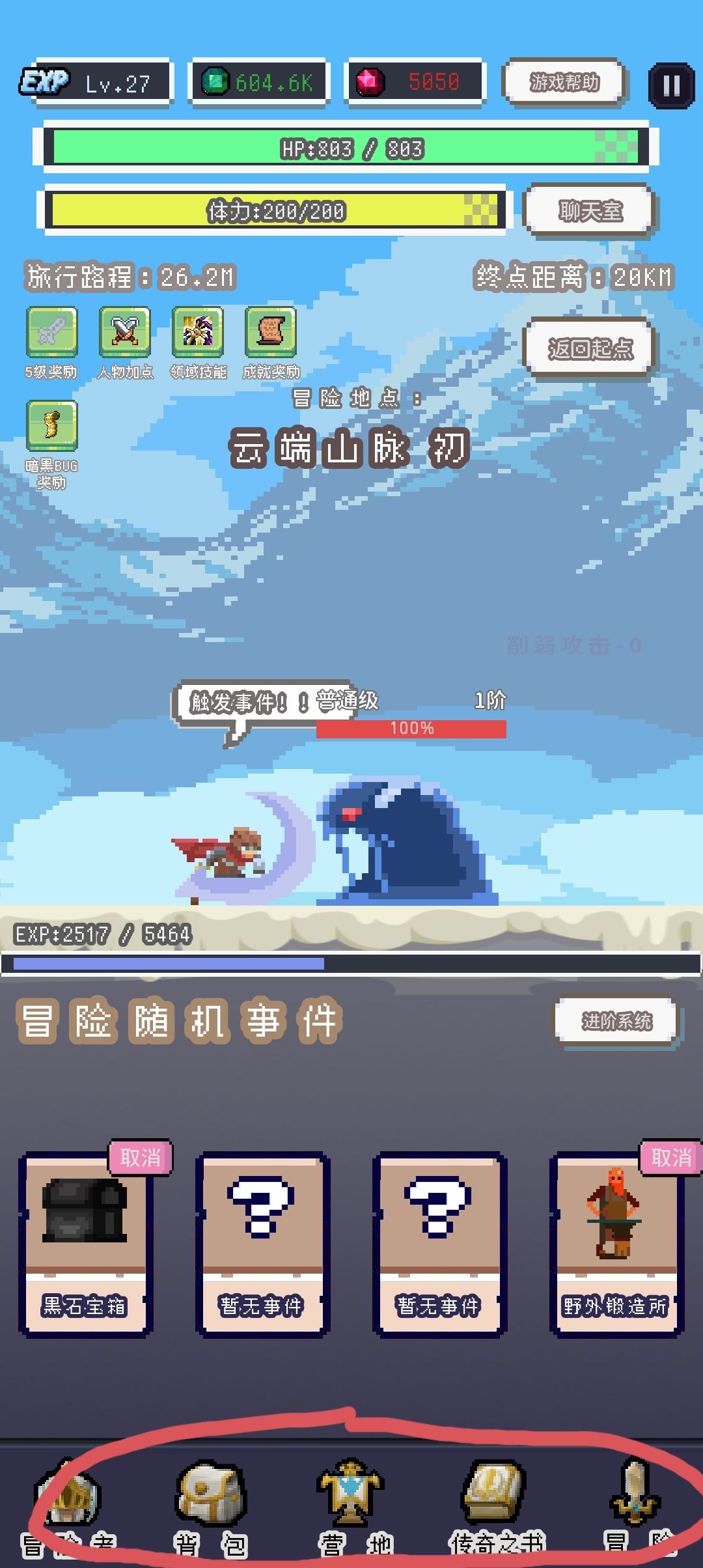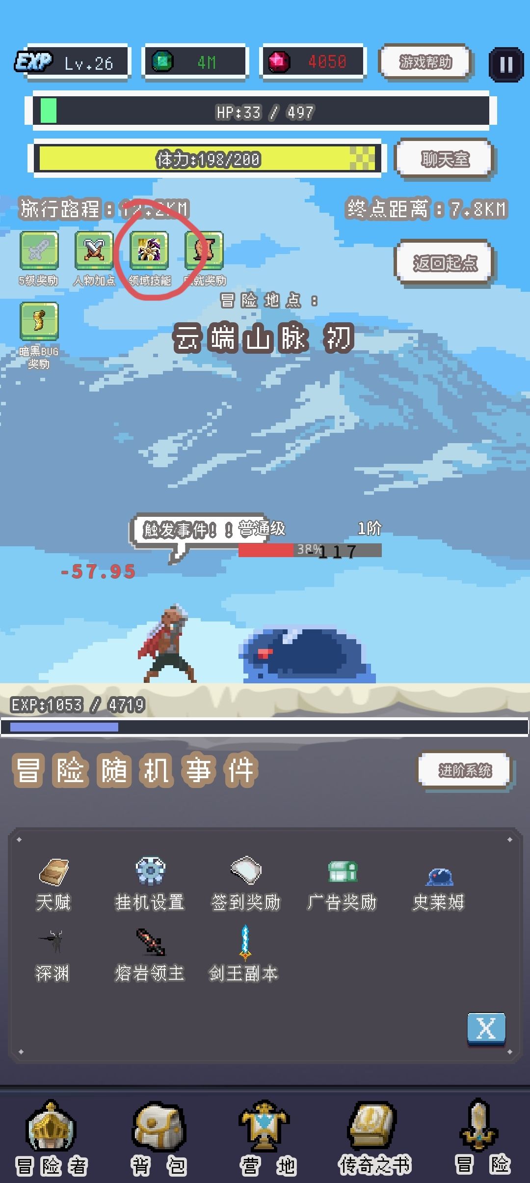 冒险随机事件的上方是经验条