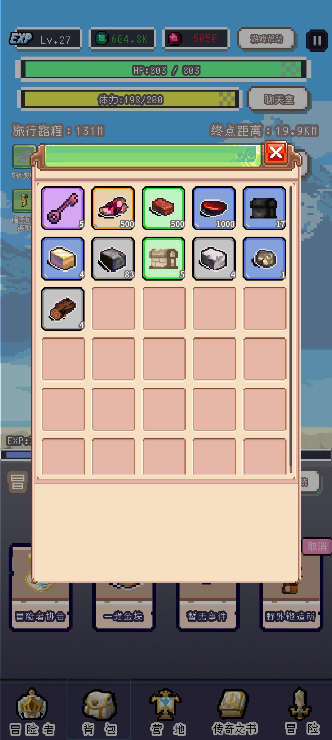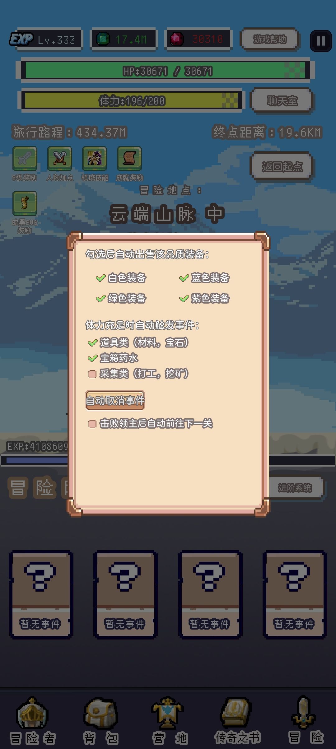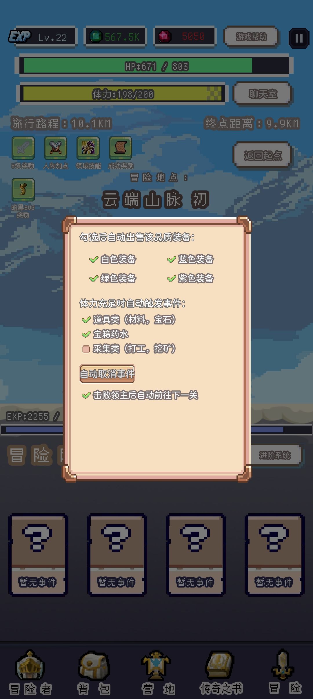 冒险随机事件的上方是经验条