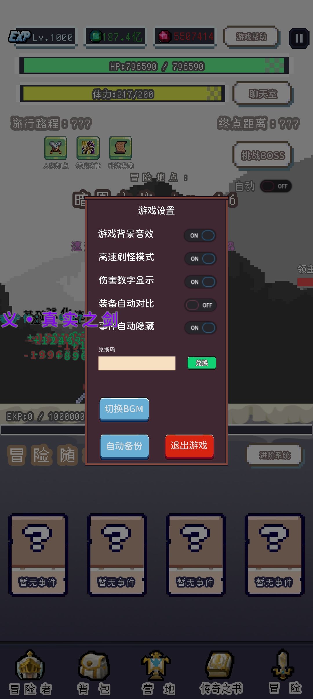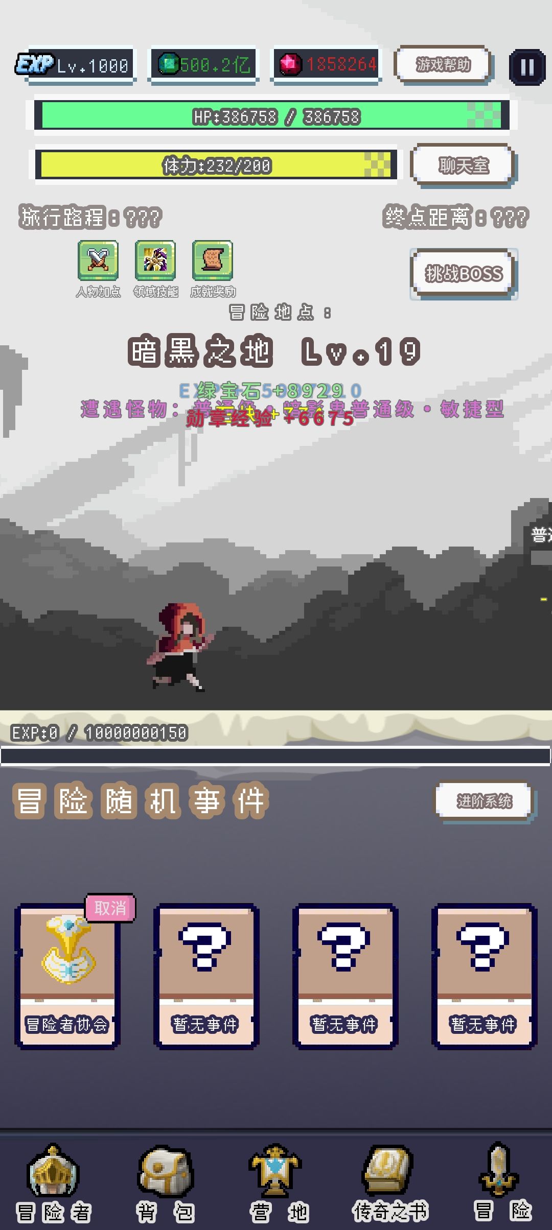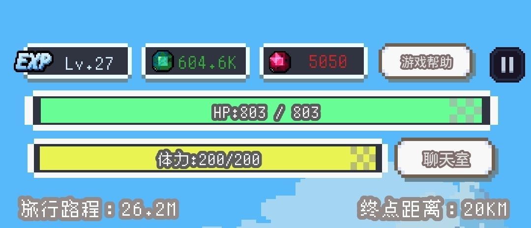 下面显示你已经走了多远和距离你打boss还有多远(提升速度可以走的更快,上限10w)