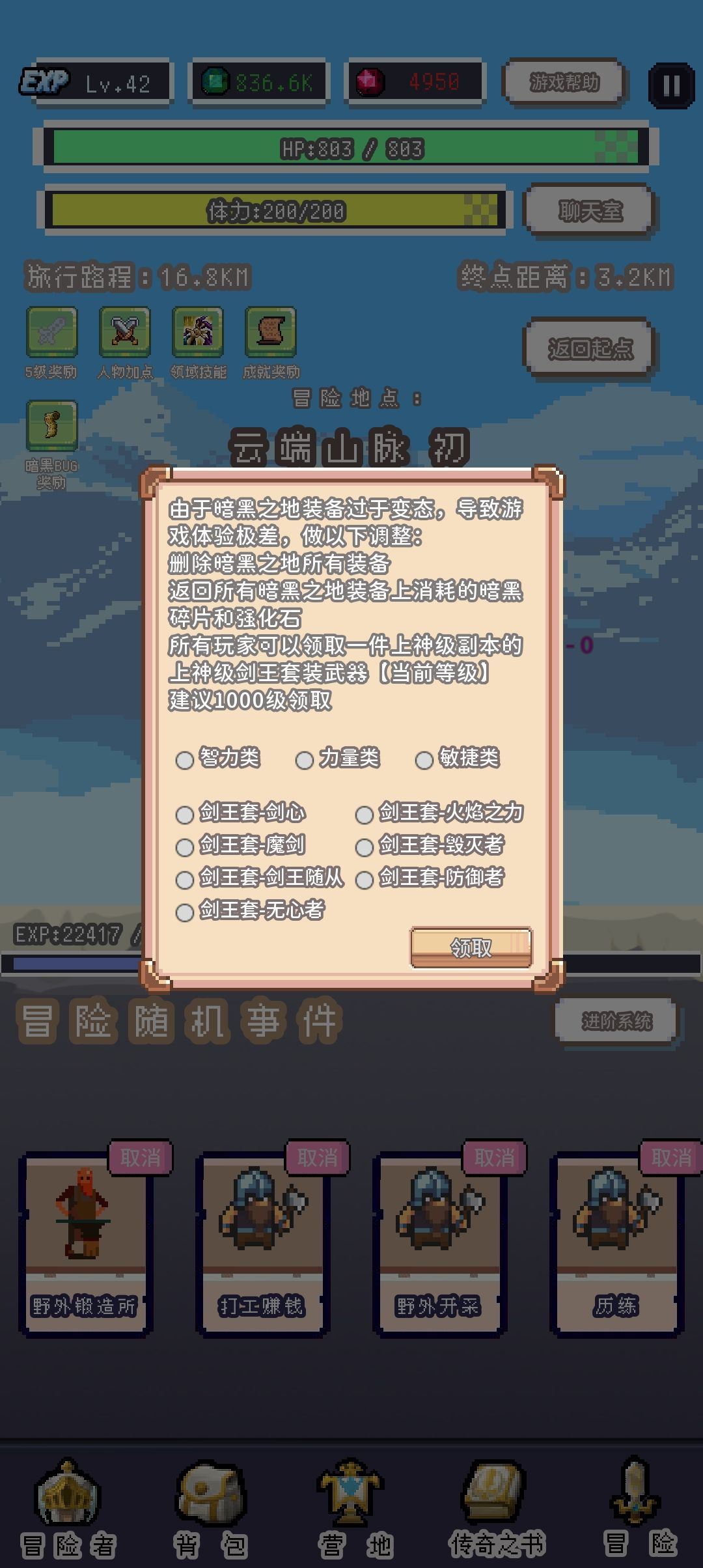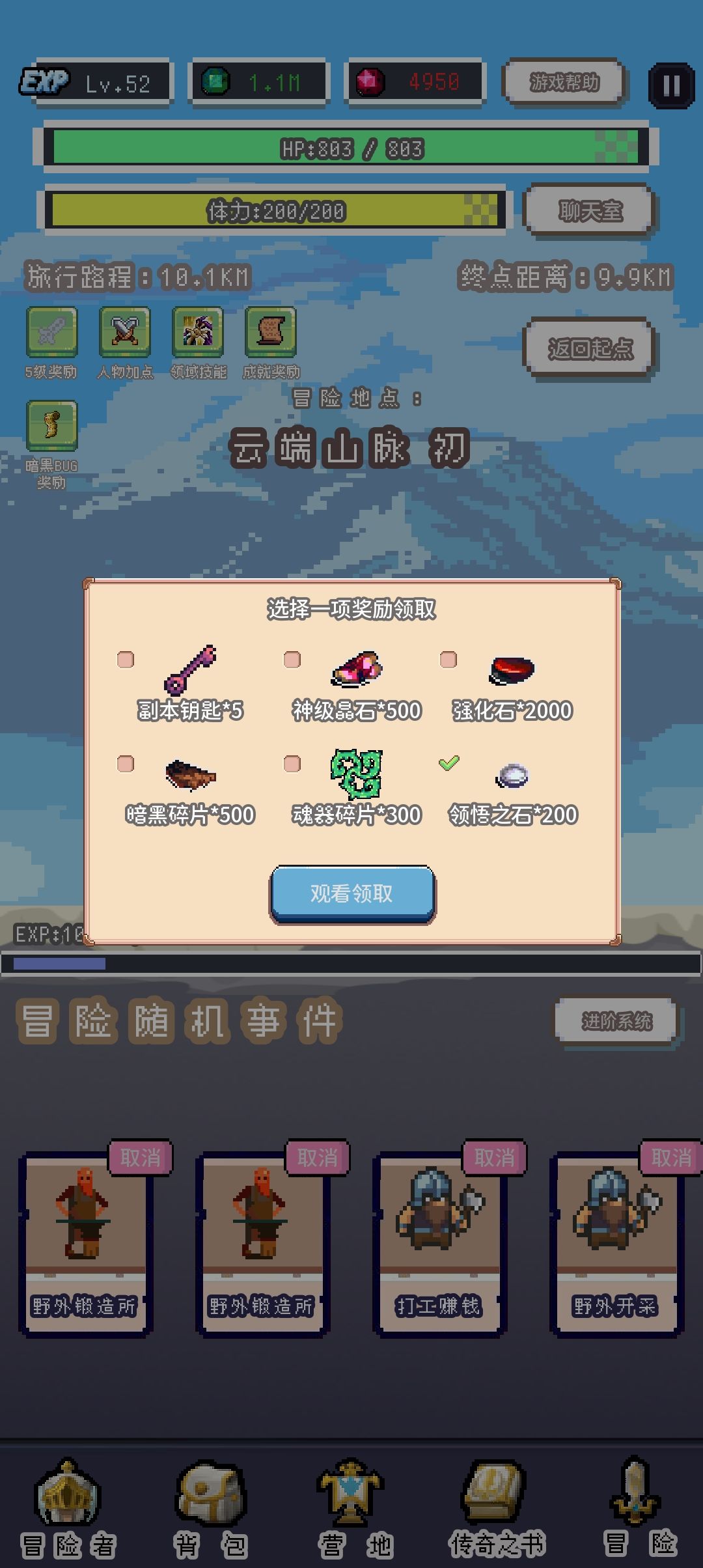 野外开采和打工赚钱给的太少了,暂时不考虑,优先历练升级