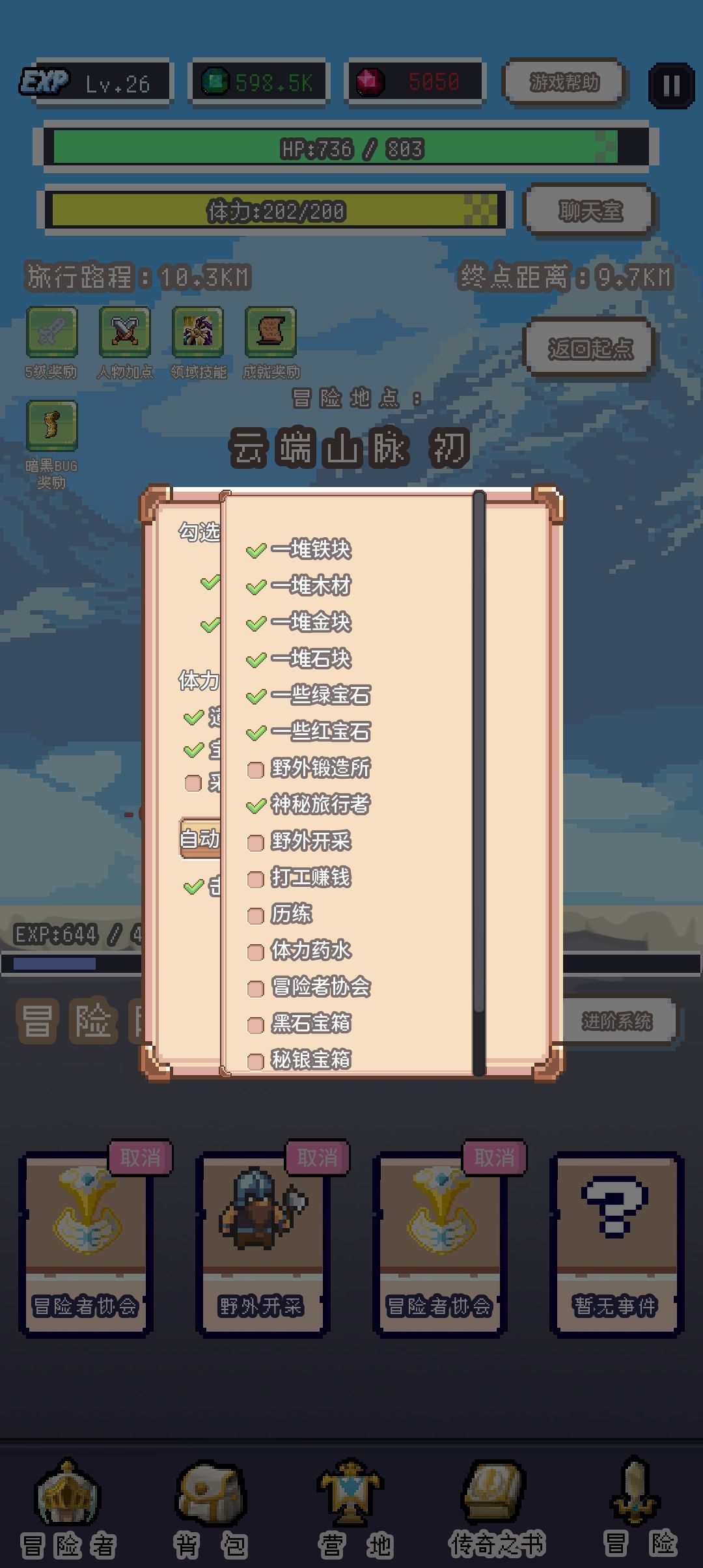 之后就可以去挂机设置里把冒险家协会取消了,等到1000级再打开开始突破