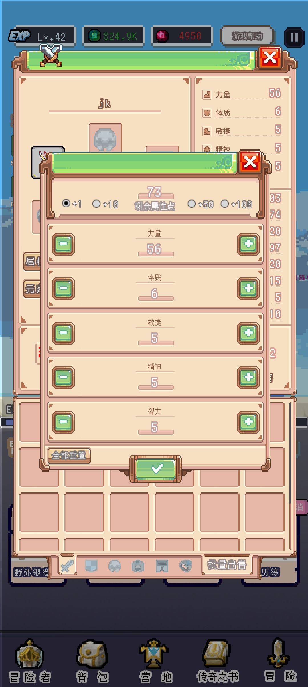 重生:1000级可以重生,重置人物等级、勋章等级、冒险地图进度、深渊进度、暗黑之地进度,并获得领悟石、强化石和暗黑碎片(并不需要重生石)