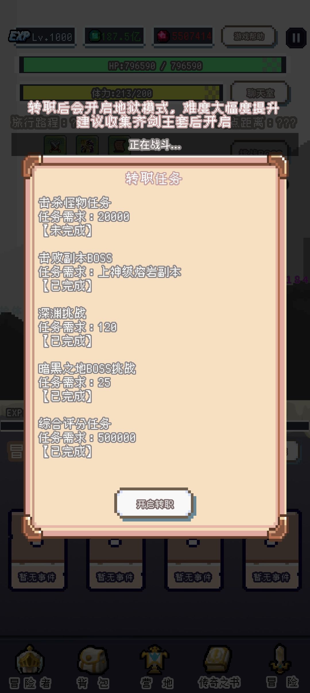 达成全部任务需求后即可转职,开启地狱难度并获得3个转职技能(用成就领的石头全部升到5级就行了)