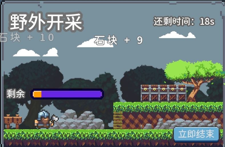 可获得木头、石头、铁块、金块