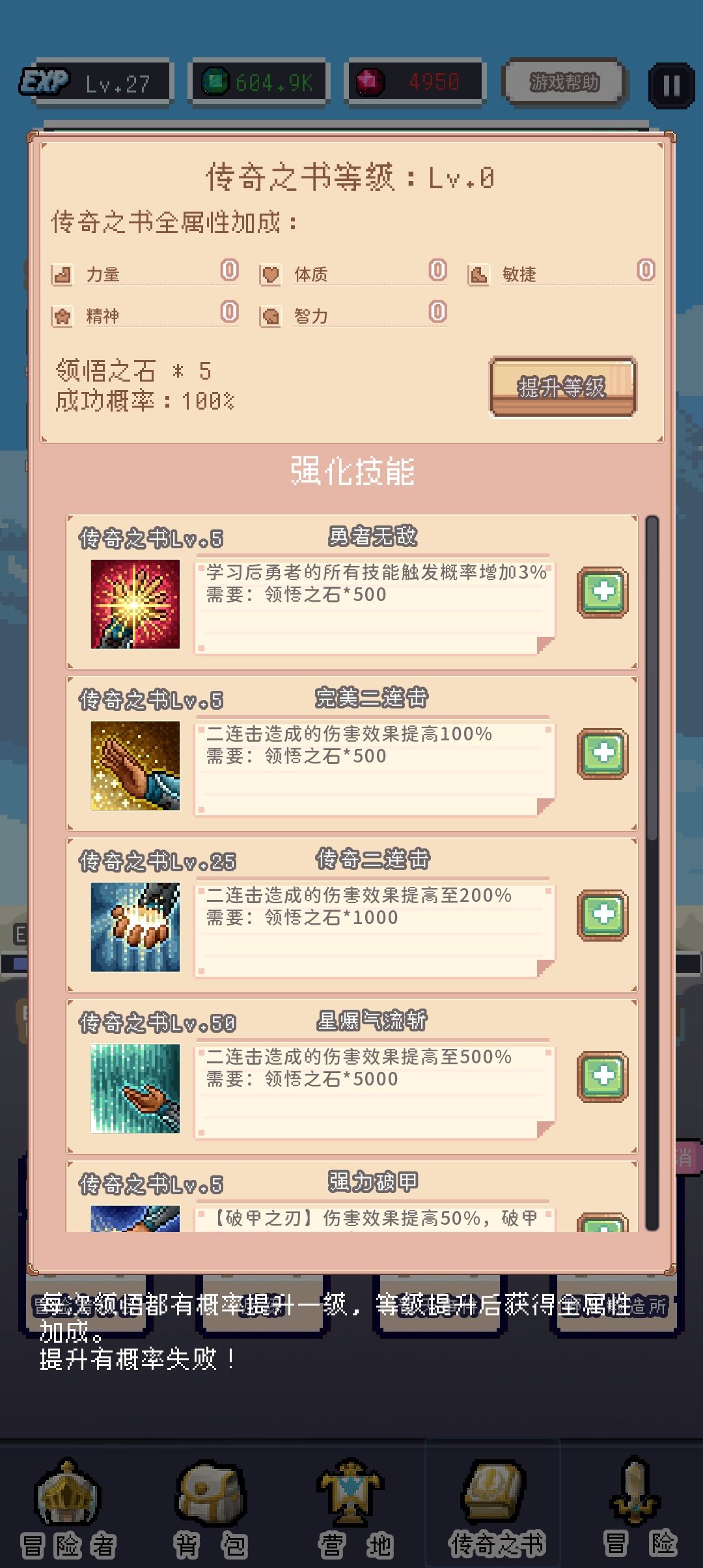 消耗领悟石获得属性强化