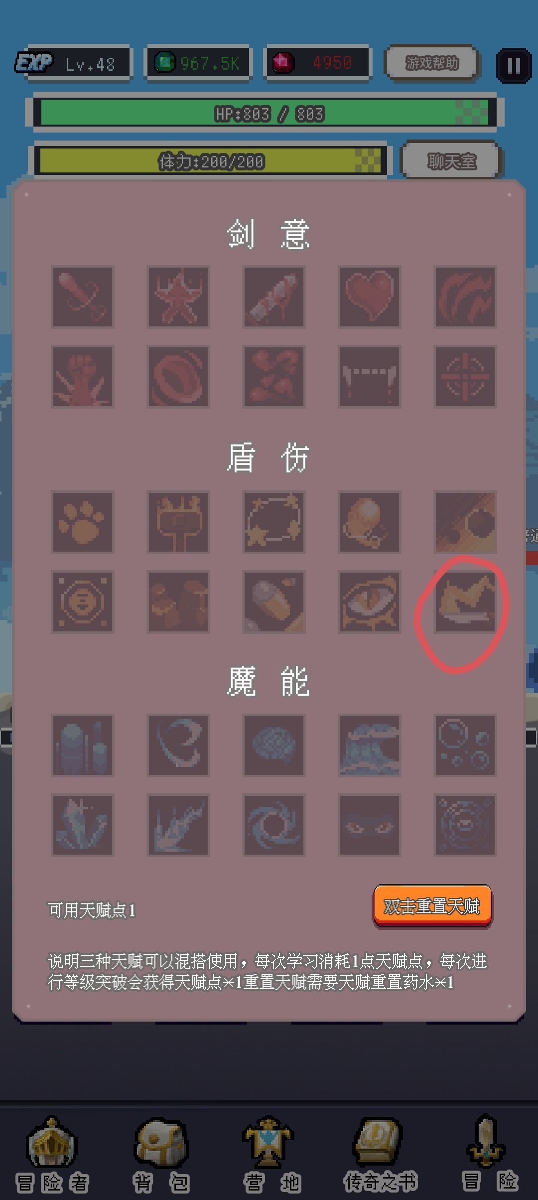 可以混搭,可以重置,天赋点在冒险家协会突破获得,最多10点天赋点,前期的一点建议点背水一战