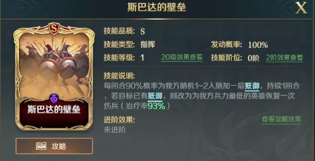 凯撒,因为凯撒统御力只要5,所以s2开荒第一天必先上,所以先说一下凯撒搭配技能。凯撒只要回血,上个赛季末凯撒增强,增加了解控,因此成就奶突阵容。打高输出的萨拉丁最怕项羽的控制队,有了凯撒少了不少障碍。凯撒第二个技能带斯巴达壁垒,详细后面会又说到,第二个技能带半月形骑兵阵,这个技能给萨拉丁起到升华作用。给主将和随机副将敏捷加100%连击,这样萨拉丁伤害再次得到升华。半月形骑兵阵与楔型骑兵阵选择,两个技能都是能提供连击效果,这里我个人觉得半月形骑兵比较好,毕竟是100%使连击。