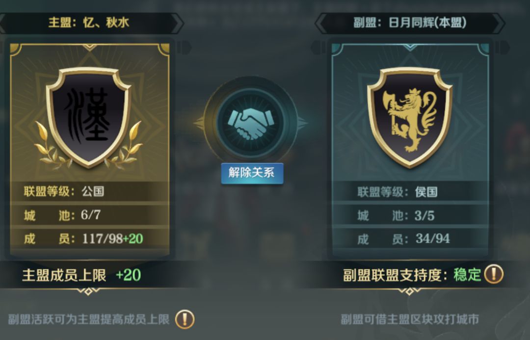 主盟和牛牛算是敌对国家,主盟目标是打19级城,立公国,所以打牛牛区块他们基本没兵力,所以我们出不去那是正常的,盟主就想要不要先帮他们你拿下19城,他们拿下19城之后才有精力帮我们对抗牛牛。于是我们也很团结,攻打19级城我们全部人都去帮主盟守打守军。主盟目标达成之后当然大半主力去打牛牛了,秋水也是秀直接偷他们的屁股。我们就有一个想法,吞牛牛的13级城立国。第一次打直接打,因为知道牛牛兵力分散还是有希望的,你们猜赢了吗?没错输了。人手不够加上牛牛有守。这次又得找主盟帮忙了。怎么帮?帮你们攻城?