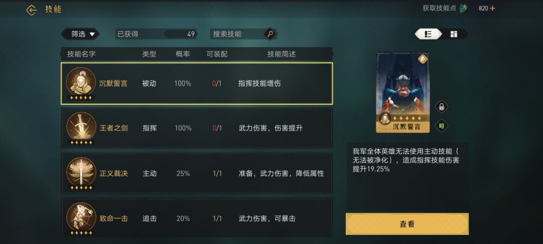 每个技能都有其对应的加成属性,例如武力加成的技能,我们就应该优先装配给主属性为武力的英雄,其他属性的技能也是同理。