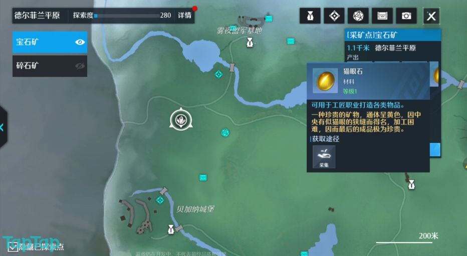 在游戏中,宝石采集一直都有着很重要的作用,宝石能够在工匠处打造各类游戏后期必备的高级道具,比如锻造装备,打造家具等等五花八门的作用,前期玩家在旅游德尔菲兰平原地图时别忘了收集矿材,为未来的矿物加工做准备。