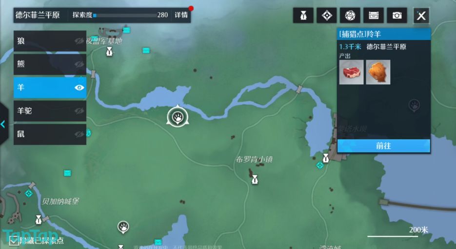 在德尔菲兰平原,玩家们可以在地图上共计获得包括野马,捕猎点等等动物资源,我们来看看这些动物资源各自分布在哪里。
