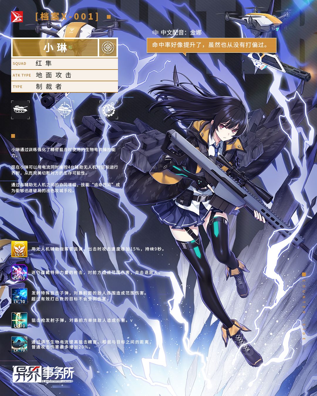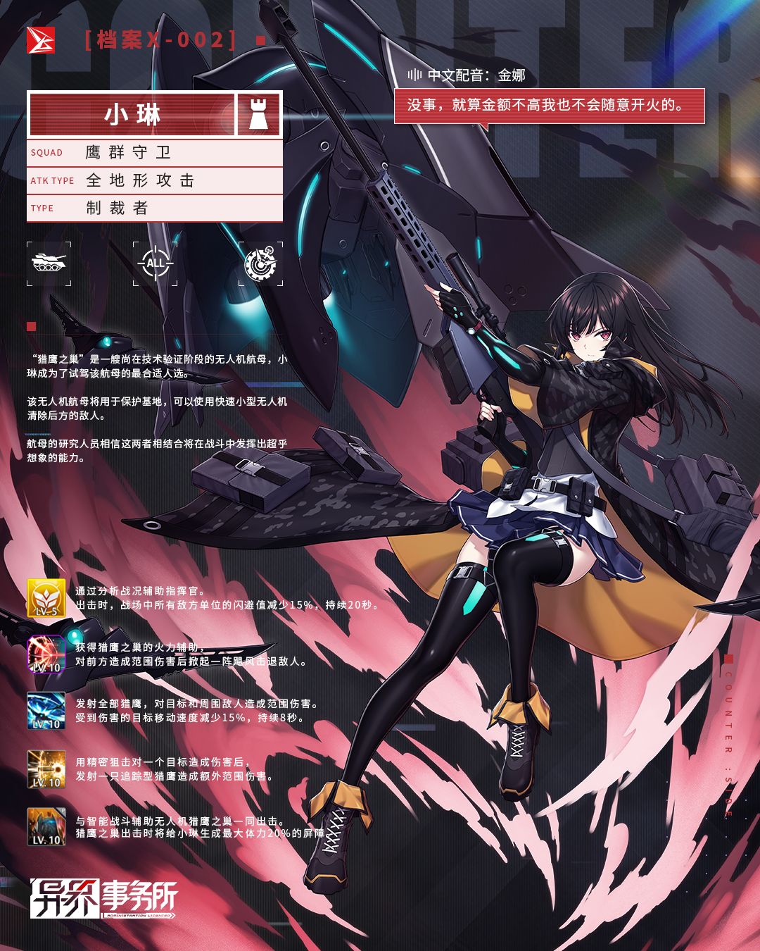 本周更新维护后,实装使用再武装科技的员工为: 小琳、刘米娜、艾力。其中小琳的再武装开放“红隼”和“鹰群守卫”。