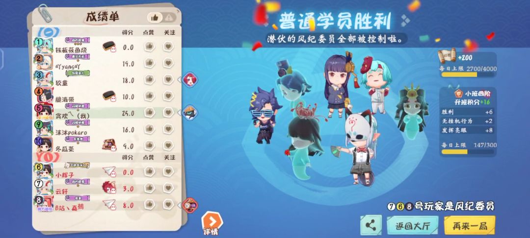 这时候场上只有两狼了,并且可以看到,239都是我们认的好人,狼坑其实只有78,但是3是针女,我是心眼,两个都没有用过技能,好人们提议弃票扎人(但是你还是可以投出自己心目中的一票,毕竟投对狼可以加分)我告诉2号,78选扎,2说要扎7,于是我就可以守着8查验