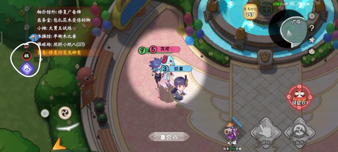 首先,开局,会有人的任务刷在左上角,这个任务是一个短任务,而且,广场里很容易被首刀,所以,你可以开局的时候,守护一下左上角的人做任务
