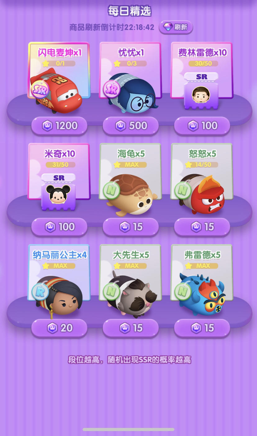 俩日份的SSR碎片:爱丽丝x2、朱迪x2、云妮x1、莫阿娜x1、爱丽儿x1、巴斯x1