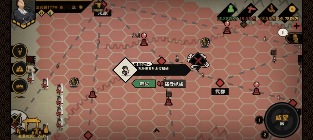 2)攻入咸阳建议,从陇西城绕到咸阳后方,避开据点,需要先灭匈奴从上方切入