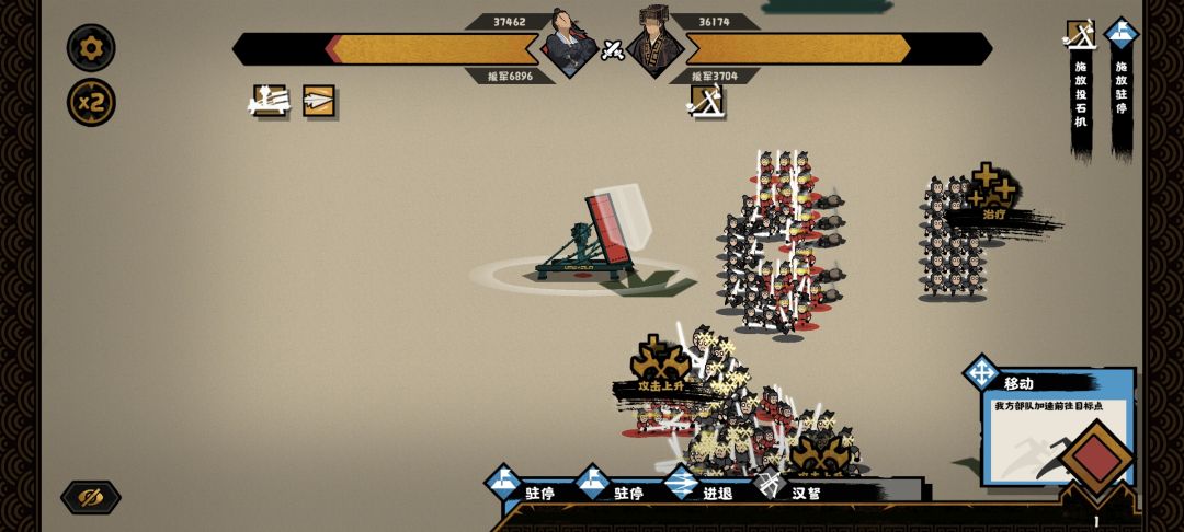 1.投石机,血量不高,且靠卡片投石进攻,射程至少三分之二地图,请将投石机放置在大后方避免被提前摧毁