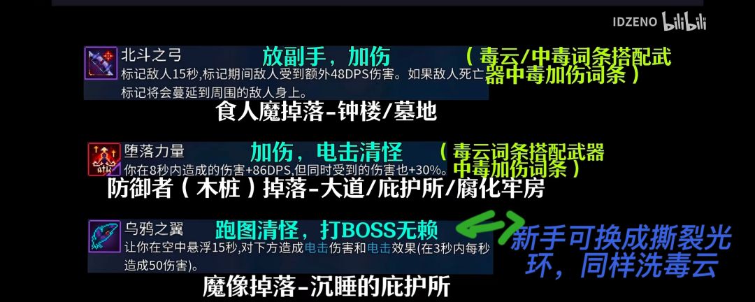 💪ps:新手建议把乌鸦换成撕裂光环,乌鸦上手难度较高,需要一段时间练习,所以可换成撕裂光环,属性同样洗毒云