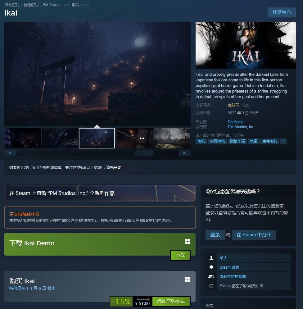 心理恐怖游戏《Ikai》发售 操控日本神社巫女冒险