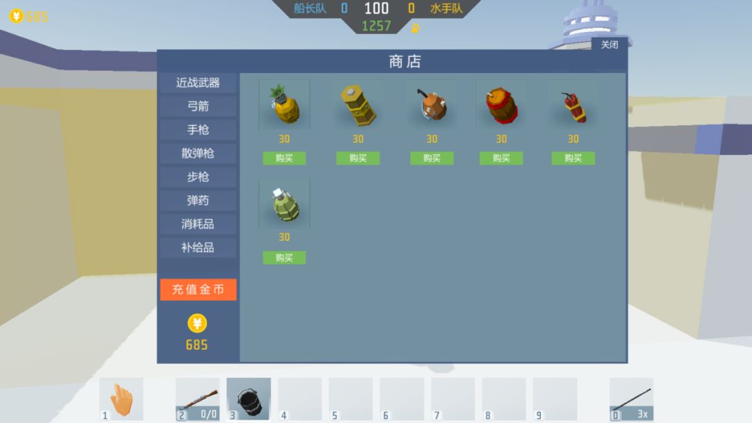 进入游戏地图后会弹窗出现一个【商店页面】,左侧有武器、道具类型选项卡,你可以根据个人需求以及左下角的金币数量自由选择和购买喜欢的武器、道具。