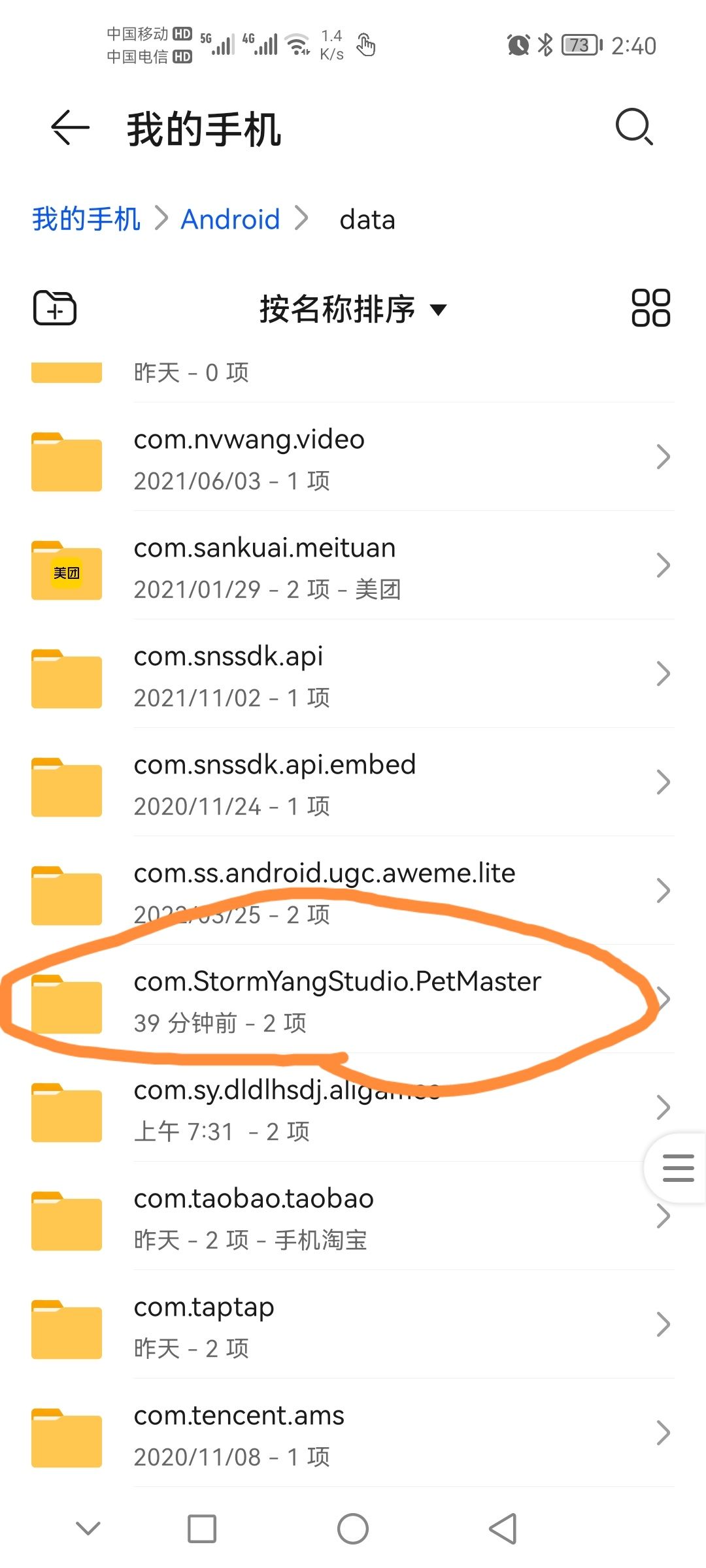 再在date文件中找到com.StormYangStudio.PetMaster文件