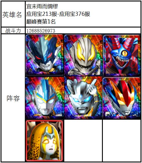 恭喜上榜的英雄们,你们都是光之国的骄傲!![[嗒啦啦2_优秀]](https://img.tapimg.com/market/images/bbb6da13ee1c31ee1405e261f12f366e.gif)