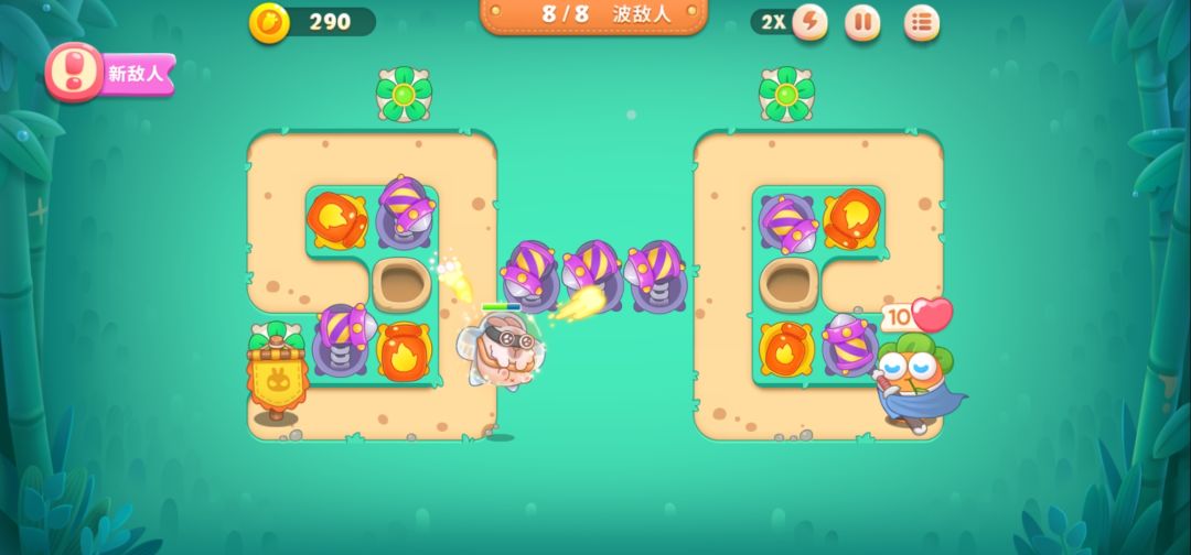开局中间两个导弹炮,右上角一个风扇,重点是清理左侧和中间的障碍。【如下图】