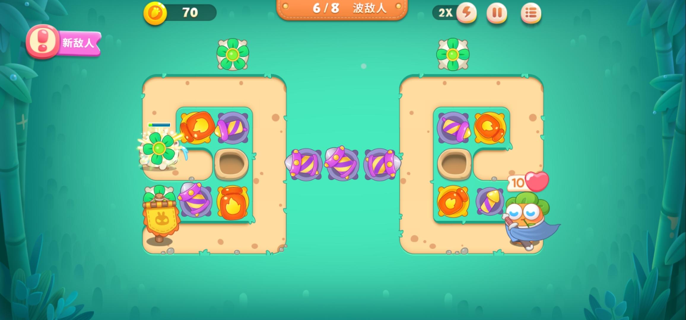 第二关可以先建左侧的两个风扇,再建中间的火炮,然后就可以清理右侧的障碍了。【如下图】