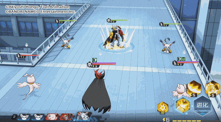 战斗开始时,奥米加兽AS将在光、雷、火三种元素中,转化为己方上阵数码宝贝中对应元素个数最多的元素拟态(自身默认为雷元素)。