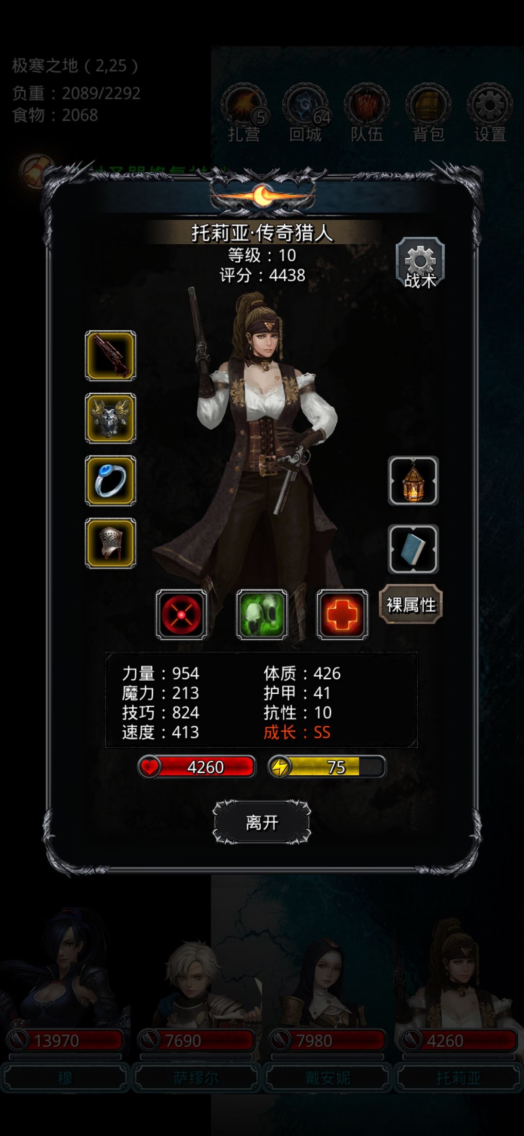 传奇猎人装备:遗迹枪+暴君甲+图15蓝宝石戒指+遗迹头盔+两个命中战利品(命中率增加31%)
