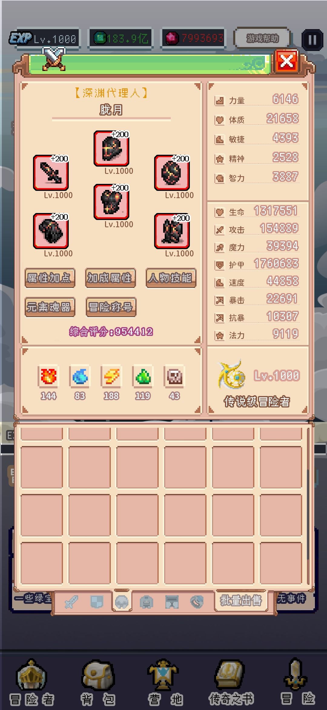 我这个属性已经很低了,打暗金剑王最后的boss有概率会被秒,估计200w防才稳。