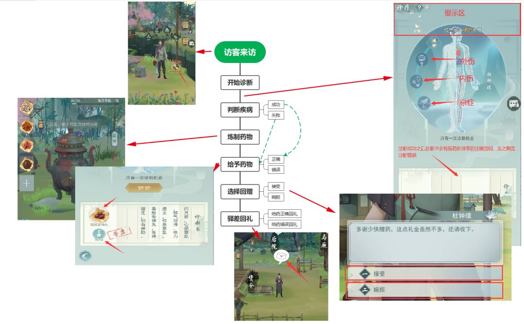 1.给访客诊断的机会只有一次,诊断错误是无法显示需要赠予什么药的。但是诊断成功之后会有明确的需求药指出。