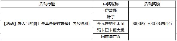 【活动奖励】:愚人节惊喜礼(内含888钻石+3333进阶石)