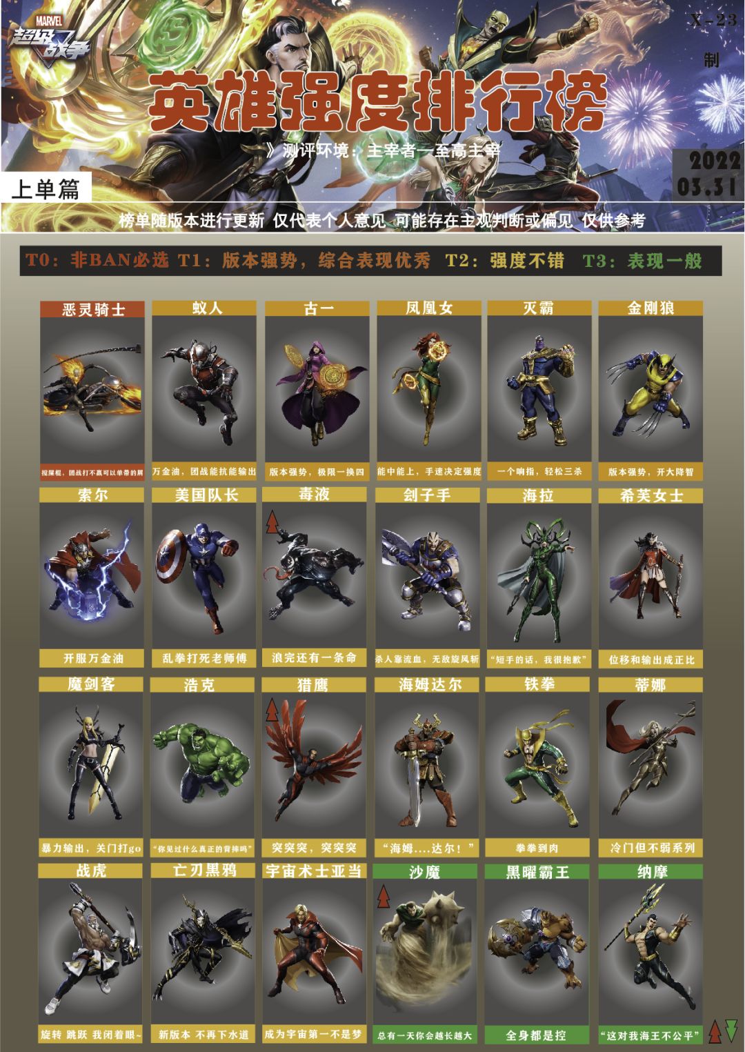 3.31版本【英雄强度榜】第⑤期 2022.03.31