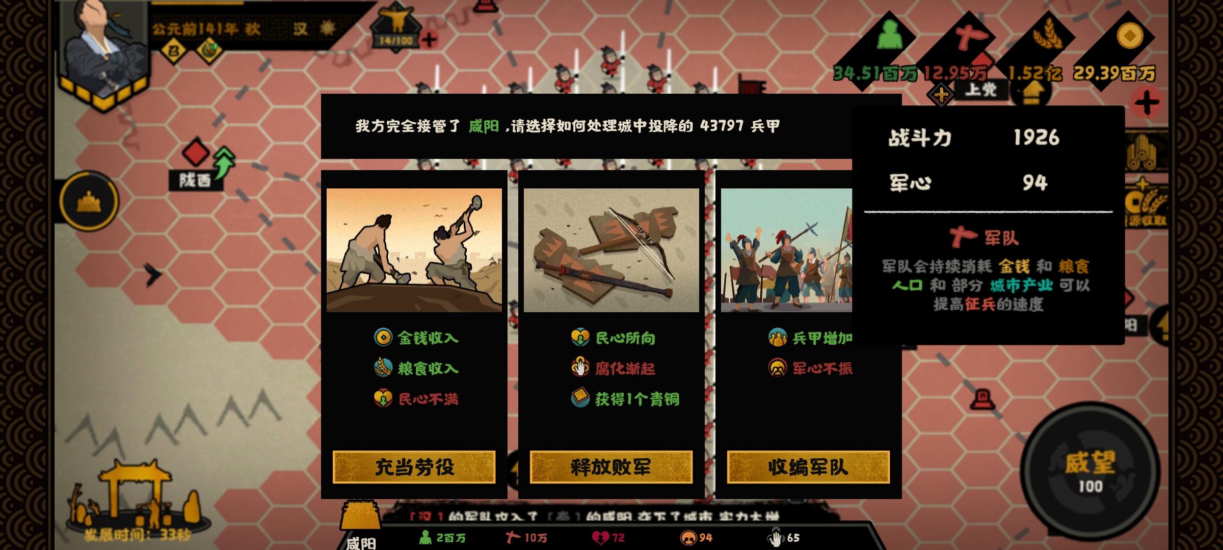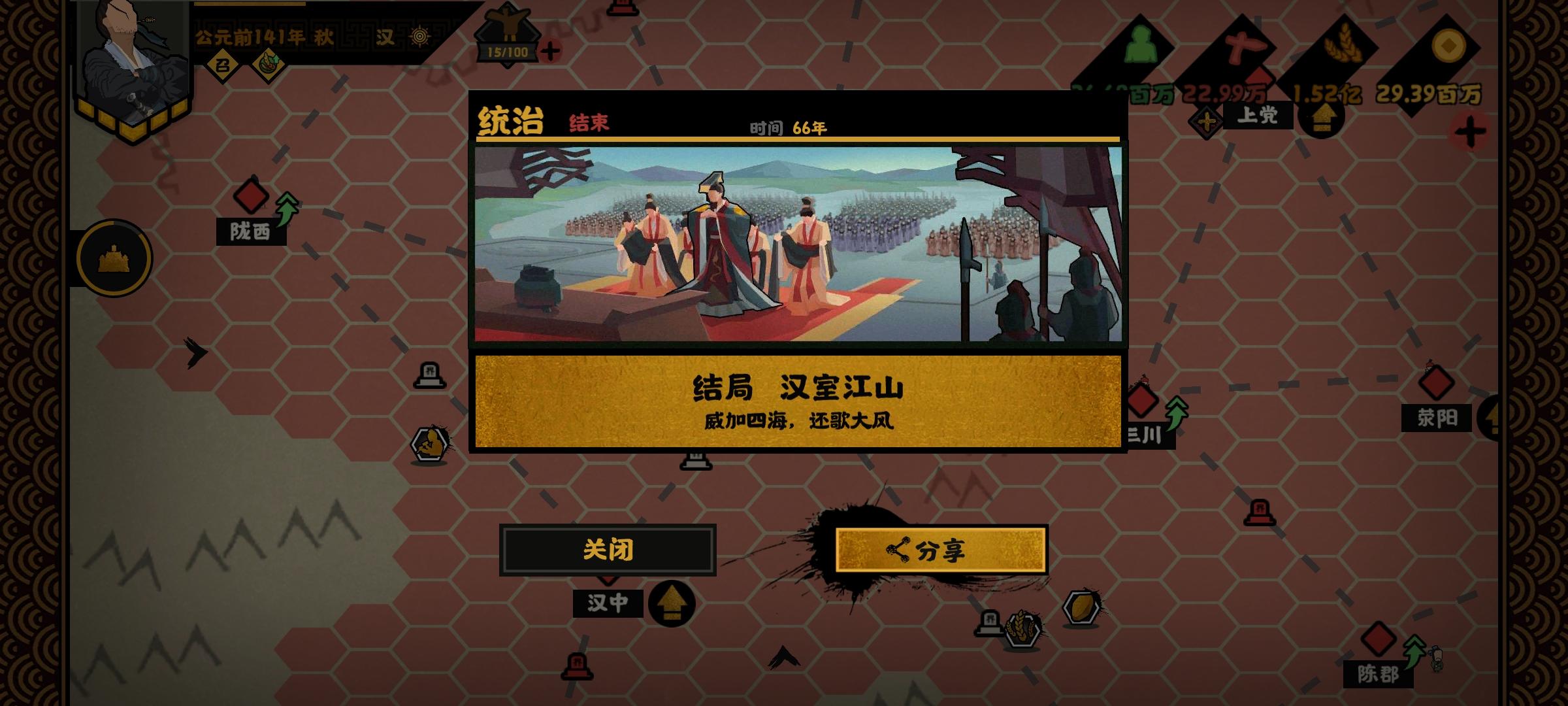 选的汉,顺带刷一下三星好去开我最爱的始皇帝陛下😆有一说一汉开局确实难,兵种也不好用,留一个用来交易其他的挂机以后咔咔乱杀