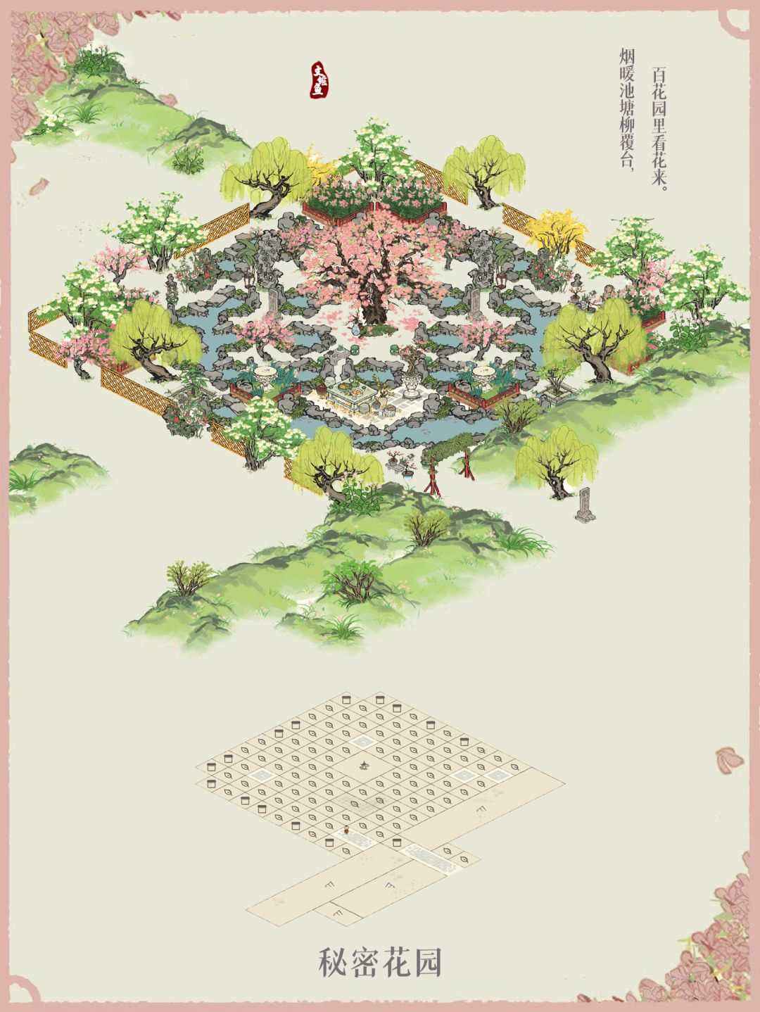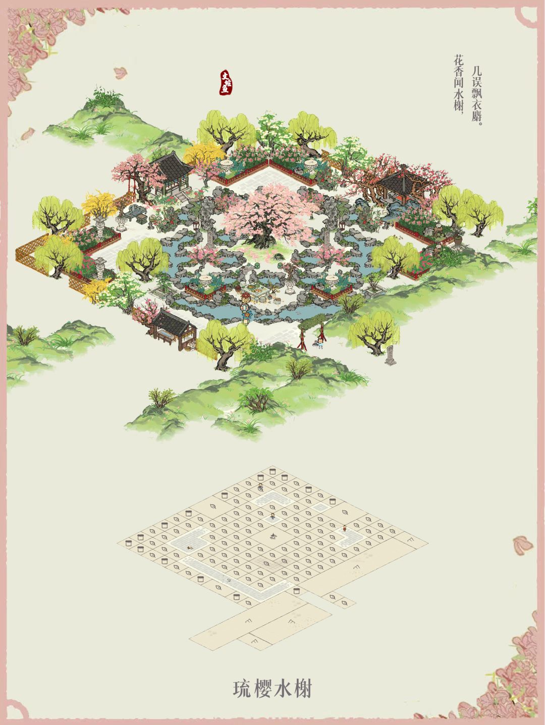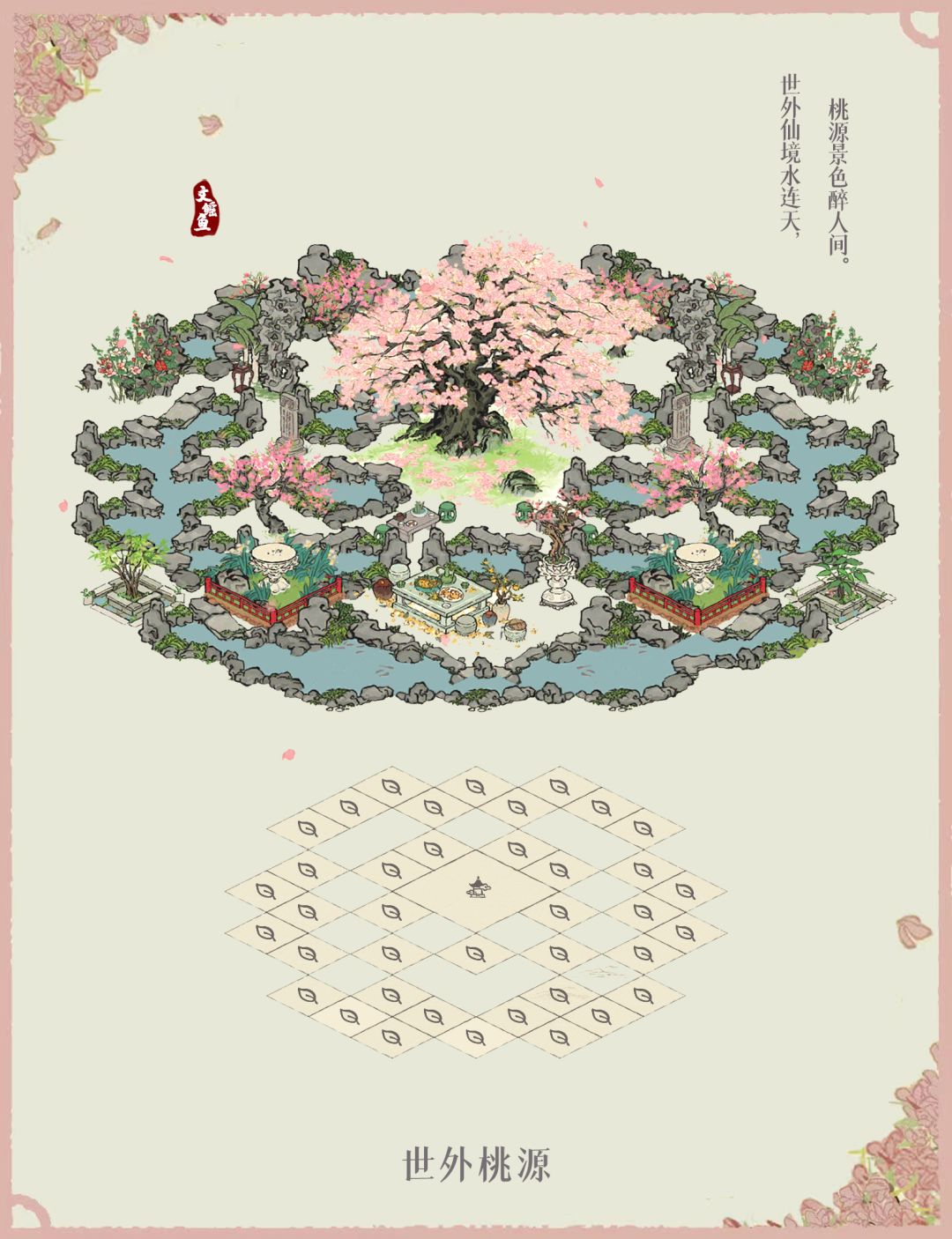 首先最初的是一个小岛,中央可放桃花也可樱花,其实看起来都差不多🤔
