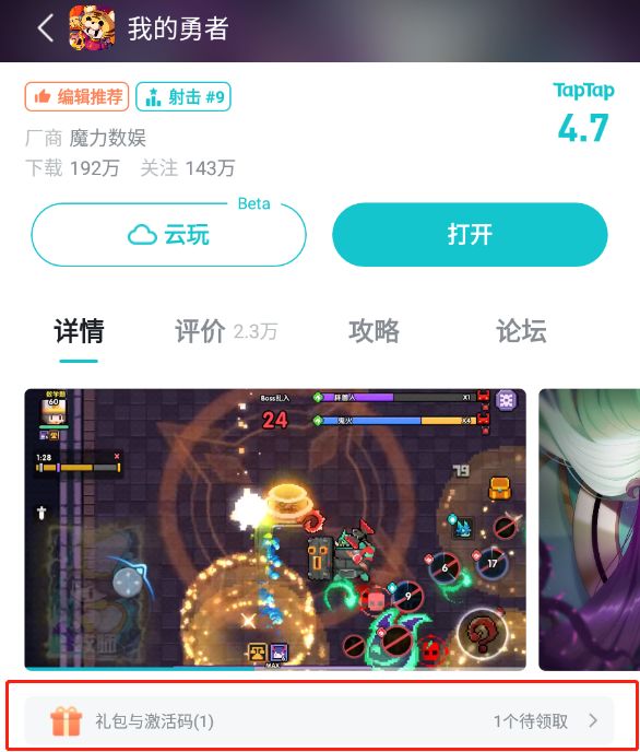 *由于taptap平台限制,只能在TapTap App中才会显示【礼包与激活码】。