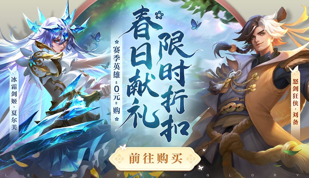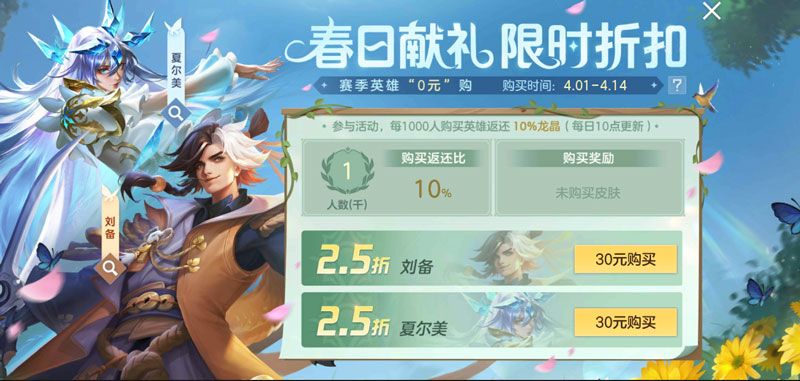 春日献礼 限时折扣 赛季英雄【夏尔美】【刘备】“0元”购!