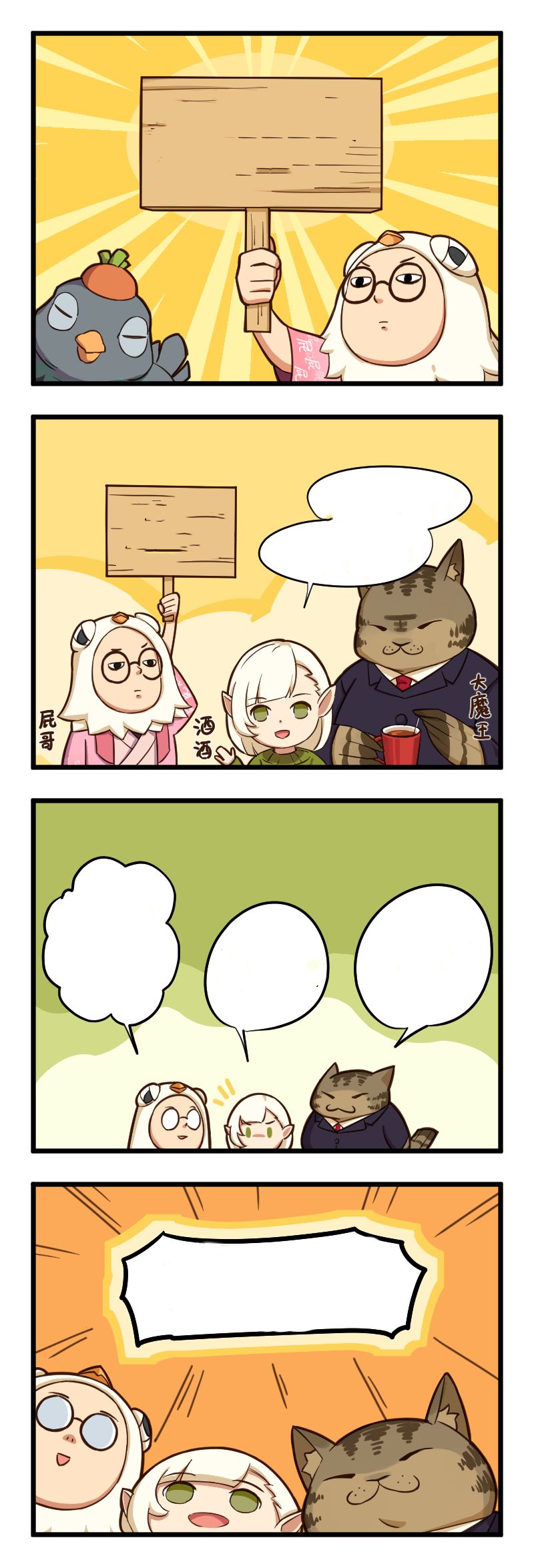 我们将会在每期四格漫画同步放出“空白版”,兄弟萌可以发挥想象,给漫画配上字幕!一起来看看谁的想法最有趣吧(≧∇≦)ノ