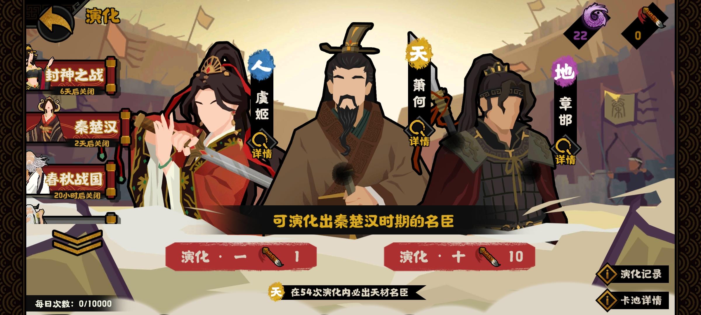 另外还需要注意的是,这个卡包没有废卡。吕后和萧何都是平民百搭名臣,不需要体系也能玩。张良需要体系,但自身就是体系核心。此外的地级与人级卡牌也都各有特色。