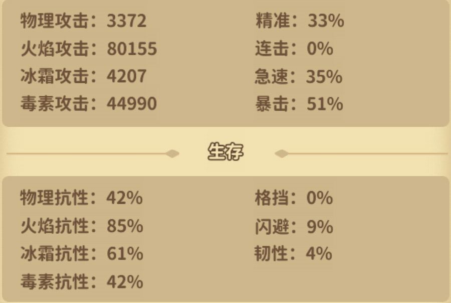 基础精准高达33点,在不插入精准符石情况下丢的伤害非常少,少到可以忽略不计,高达51暴击率,暴击后血书和烈焰呼吸的的特色,就体现出来了高续航