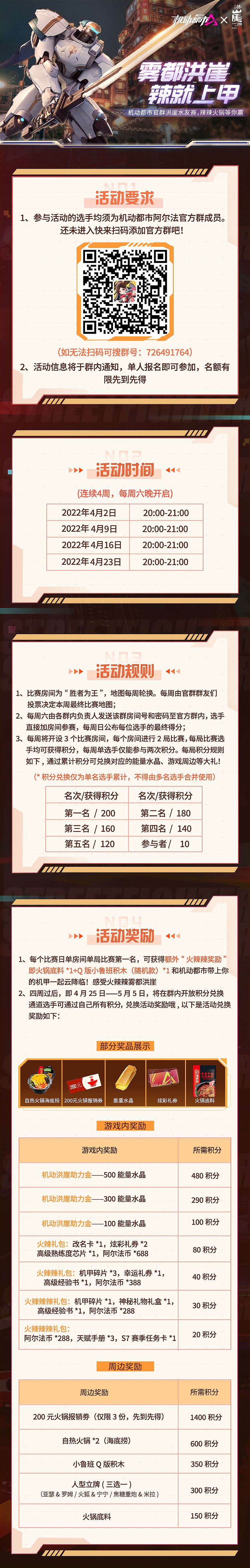 4月2日至4月23日期间,每周六晚参加官群水友赛,参与即有奖!