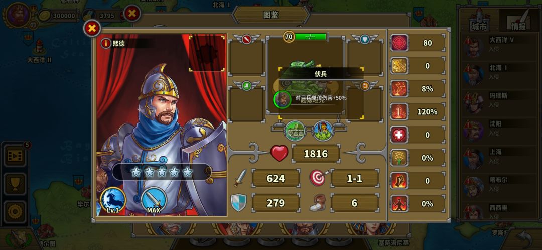 然后就能开始谈指挥官,领导力,间谍,军号,鼓舞这些技能了