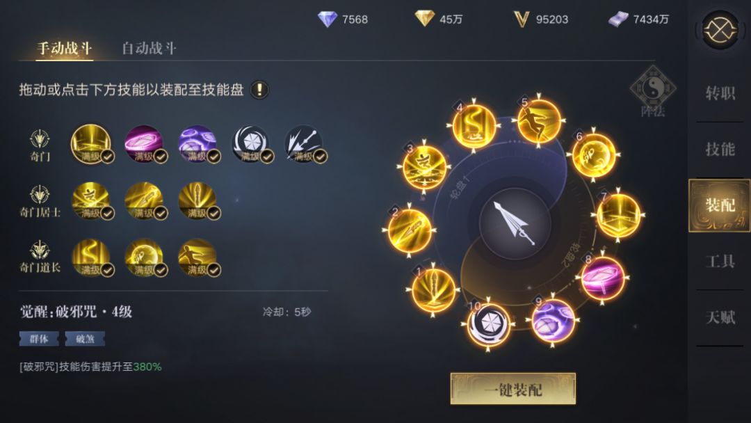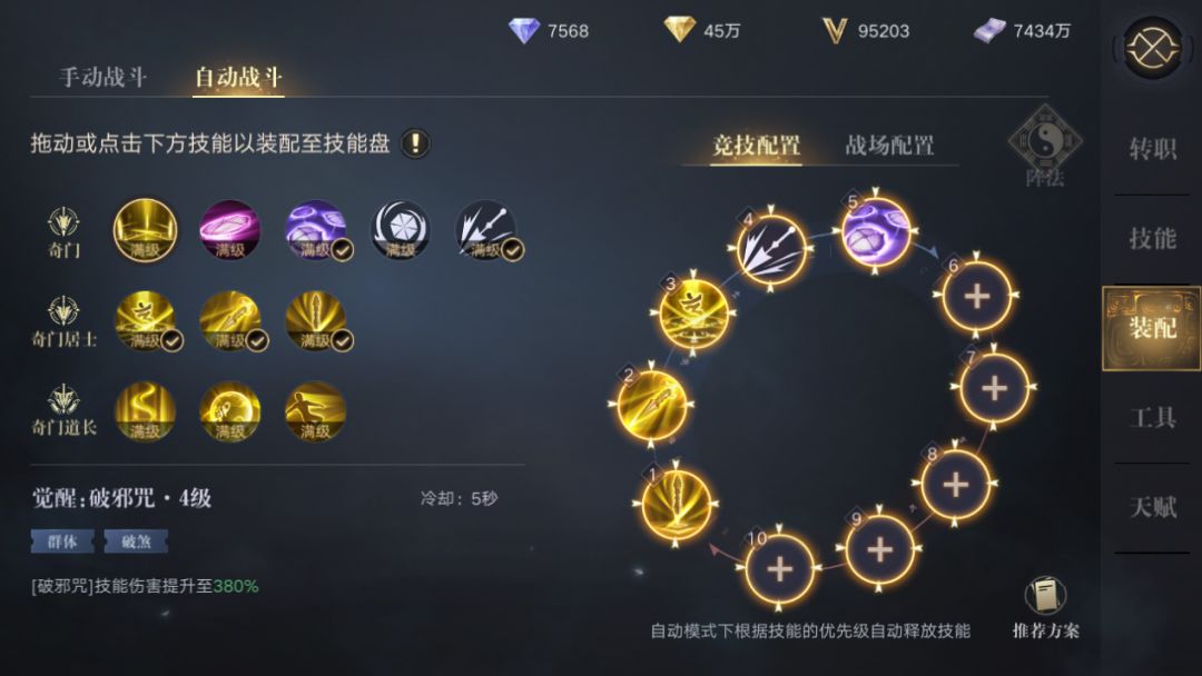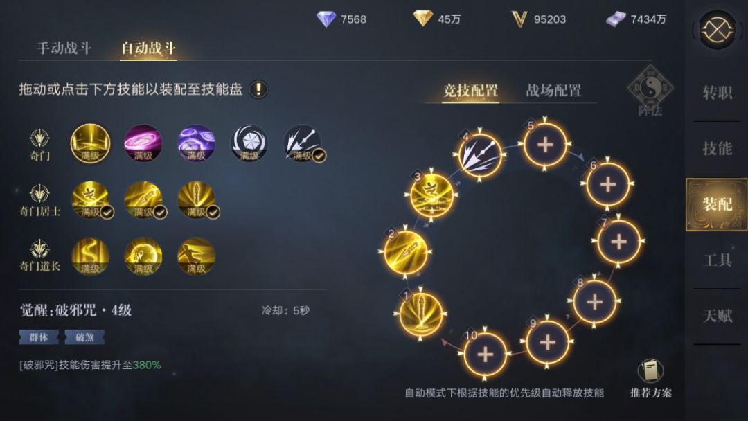 这里解释一下,3+1是奇门阵法特有的叫法。“3”指的就是1转的3个技能,无论是打架还是打粽子都是必带技能,所以统称为“3”。“1”指的就是单体普攻技能透心杵了。