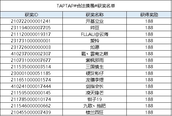 恭喜以下主公获得本次奖励,奖励会在7个工作日内发到邮箱,请注意查收哦~