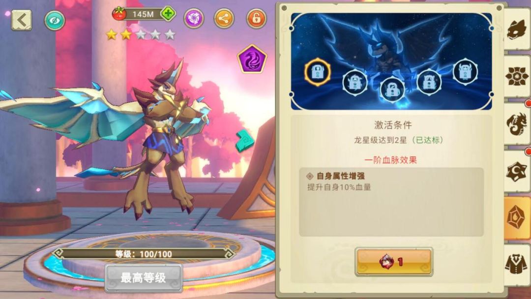 -角色等级达到80级且龙星级≥2星时可觉醒血脉