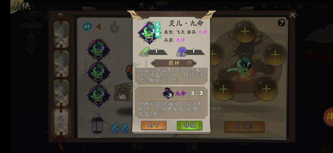 进图之后把恶贯满盈替换成柿子,出来把灵儿化形换成