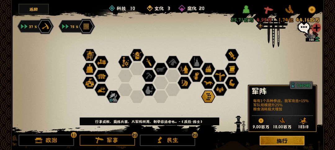 一旦前期没有做好铺垫,后期就会被楚国全方位进攻。当然也可以直接玩楚国,那么就不得不面临张楚带来的强大压迫感了,张楚的科技发展速度是相对而言较快的。