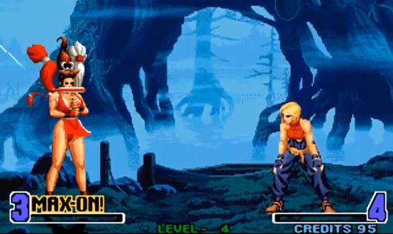 但让人意外的是,这部画面粗糙的山寨作品,在当年的街机厅却成了整个拳皇系列最受欢迎的一部作品,得益于游戏里无限能量槽的设定,让很多小学生也可以迅速上手游戏并打出各种华丽技能,而这也正是该作能如此火爆的重要原因。