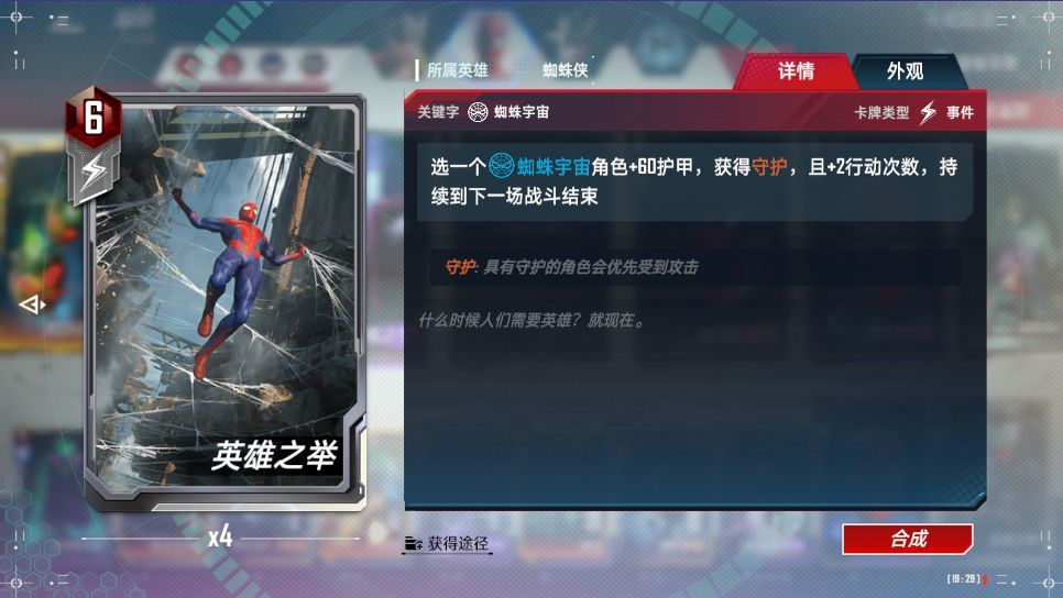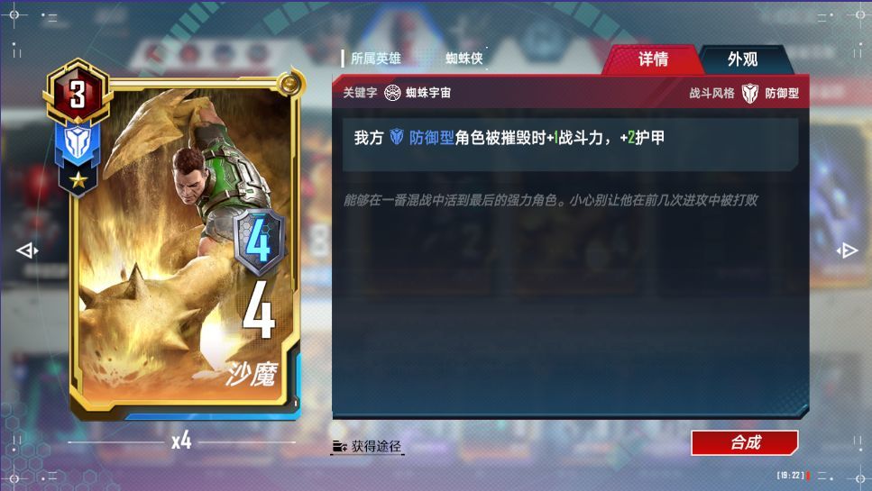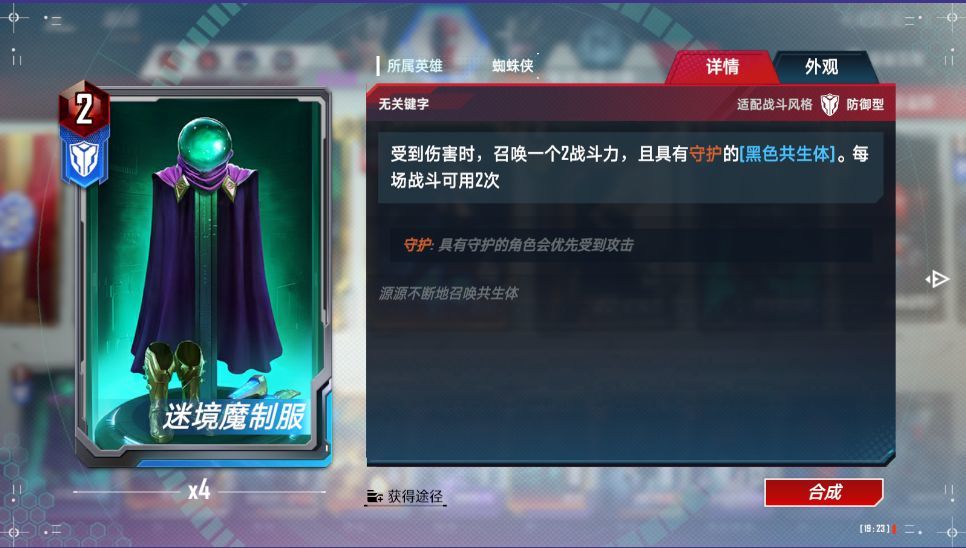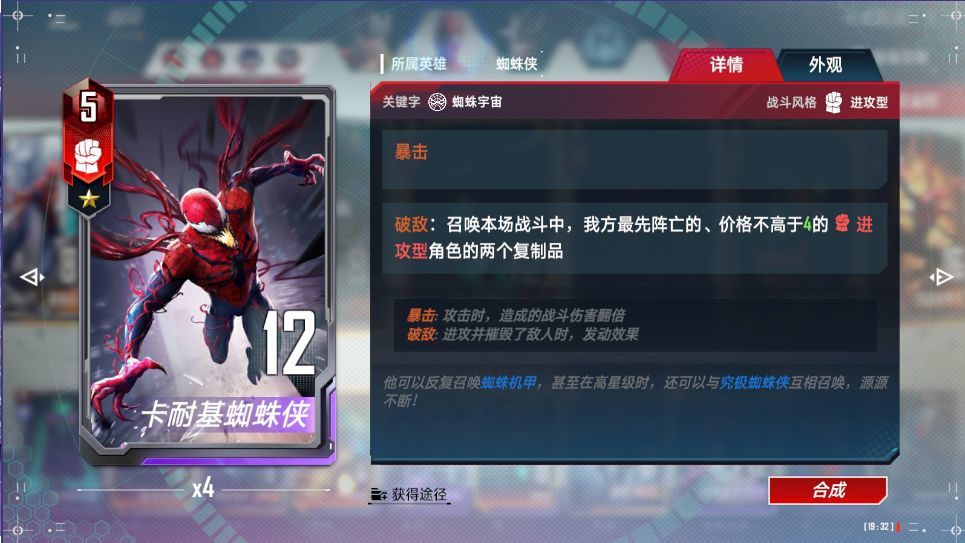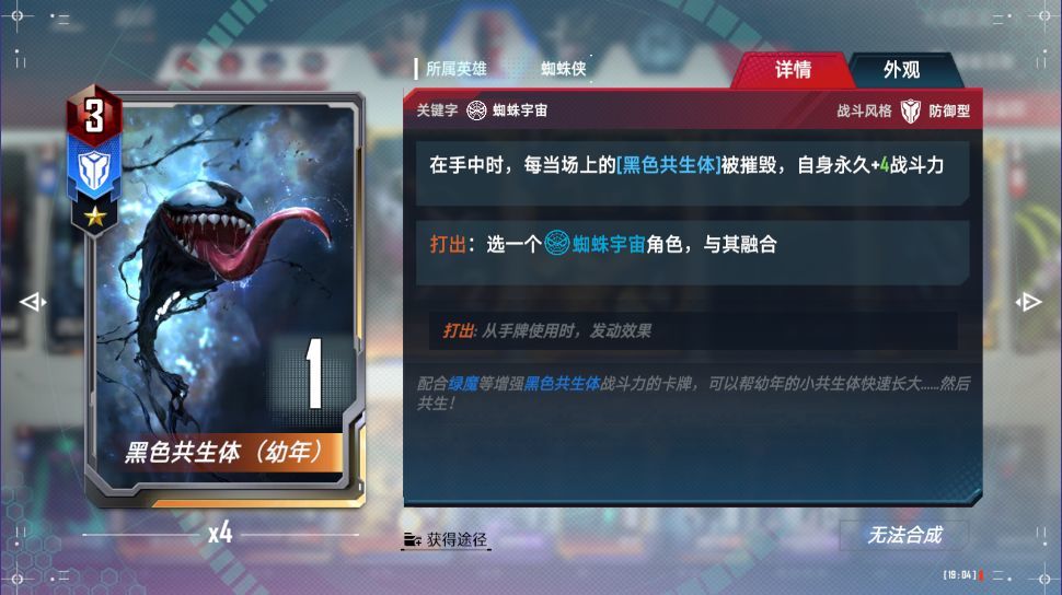打出:与一个蜘蛛宇宙角色融合,其角色会与共生体当前身材永久叠加